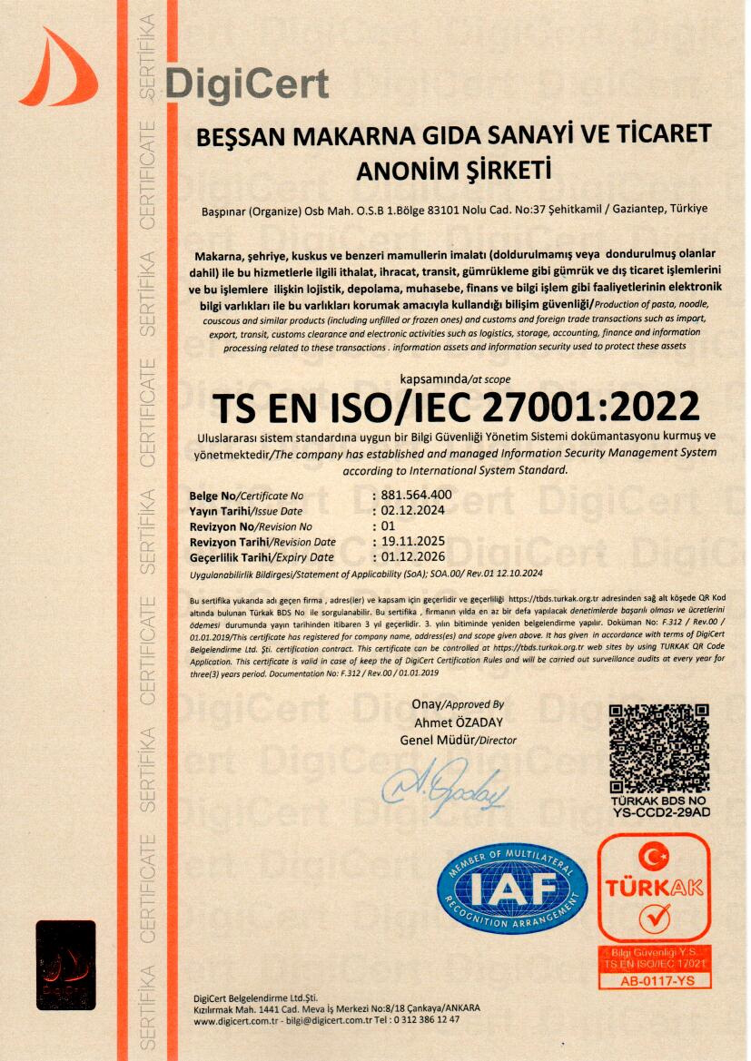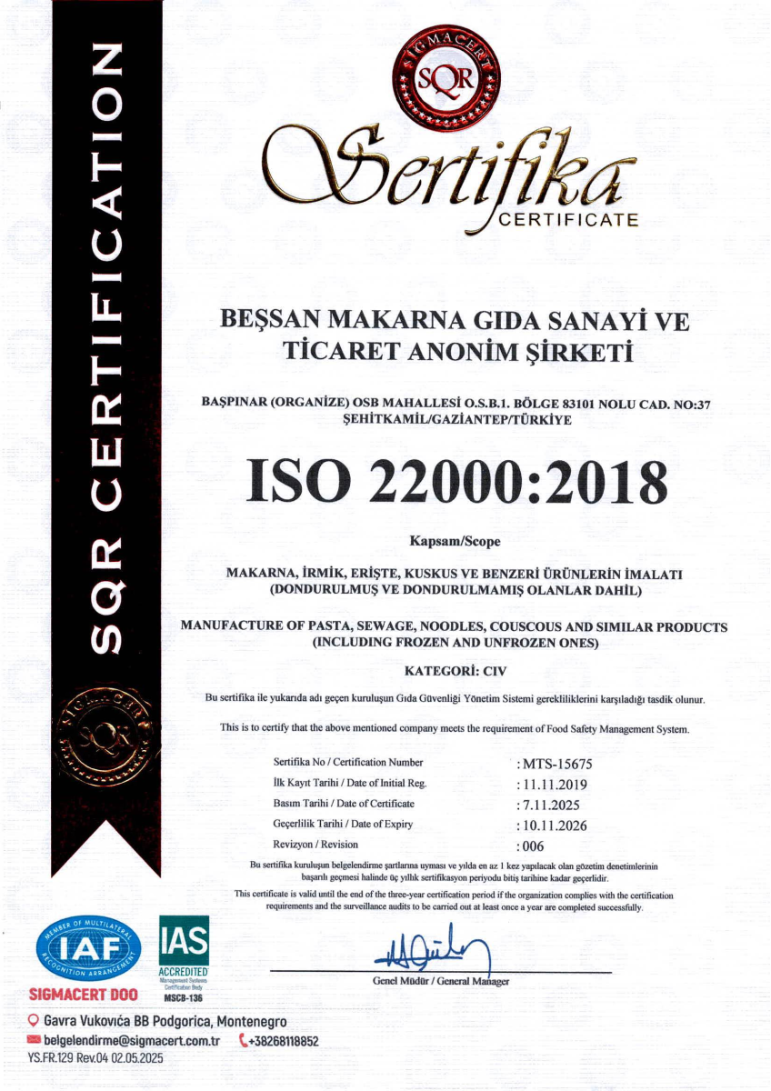 Gıda Güvenliği ve Kalitesi Politikası